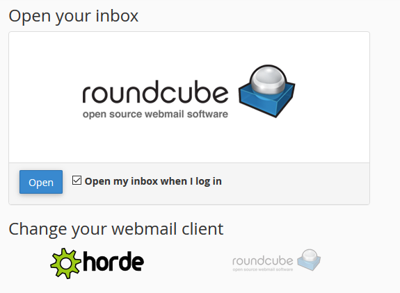 Si es la primera vez que accedes a través de este método, tienes que elegir la aplicación con la que quieres gestionar tus correos electrónicos: Roundcube o Horde. Ambas tienen una interfaz muy sencilla, tú selecciona una y pulsa sobre «Open».